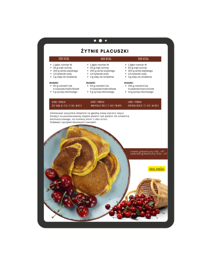 - Informacje o kaloryczności, makroskładnikach i indeksie glikemicznym, dzięki którym łatwiej zaplanujesz swoje posiłki.