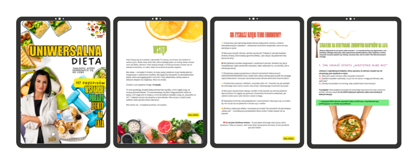 „Dieta Uniwersalna” to e-book, który daje Ci gotowe przepisy w trzech wariantach kalorycznych:
