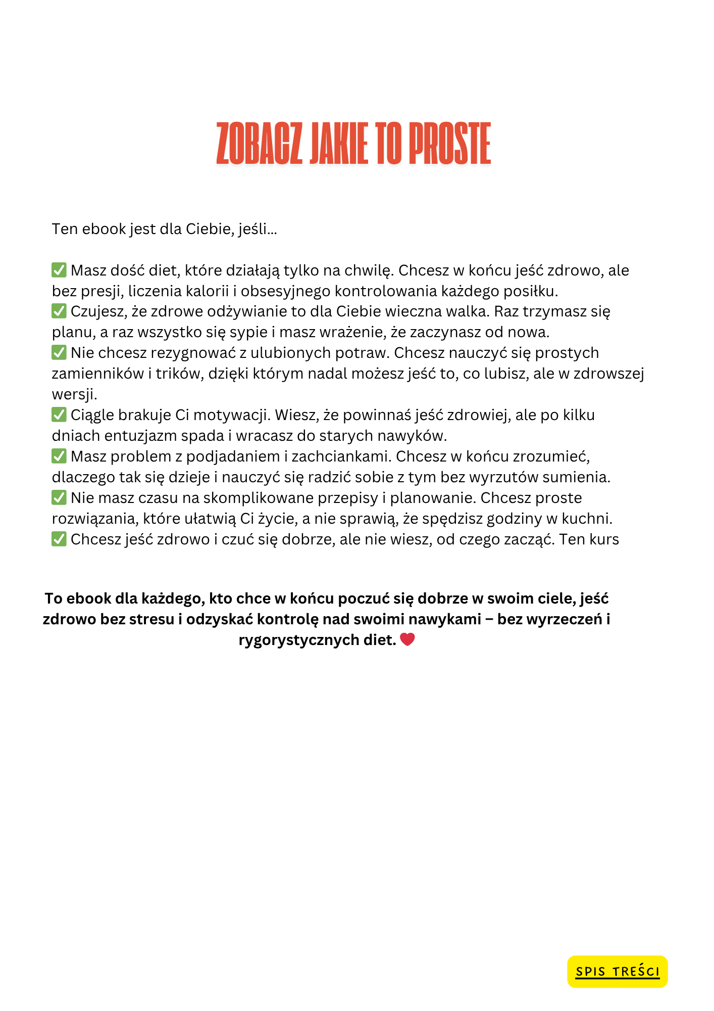 Tak – bo to nie jest kolejna restrykcyjna dieta z listą zakazów. To zbiór prostych przepisów, które nauczą Cię, jak jeść smacznie i zdrowo na co dzień. Dzięki temu nie czujesz presji ani głodu, tylko stopniowo wprowadzasz lepsze nawyki.