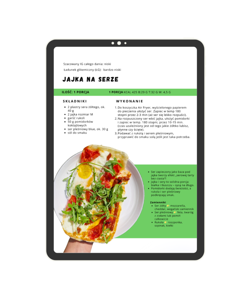 Tak! Każdy przepis zawiera dokładnie obliczone kalorie oraz makroskładniki, więc możesz łatwo kontrolować spożycie. Dodatkowo wiele dań ma niski IG i ŁG, co czyni je świetnym wyborem przy redukcji, insulinooporności czy po prostu zdrowym stylu życia.