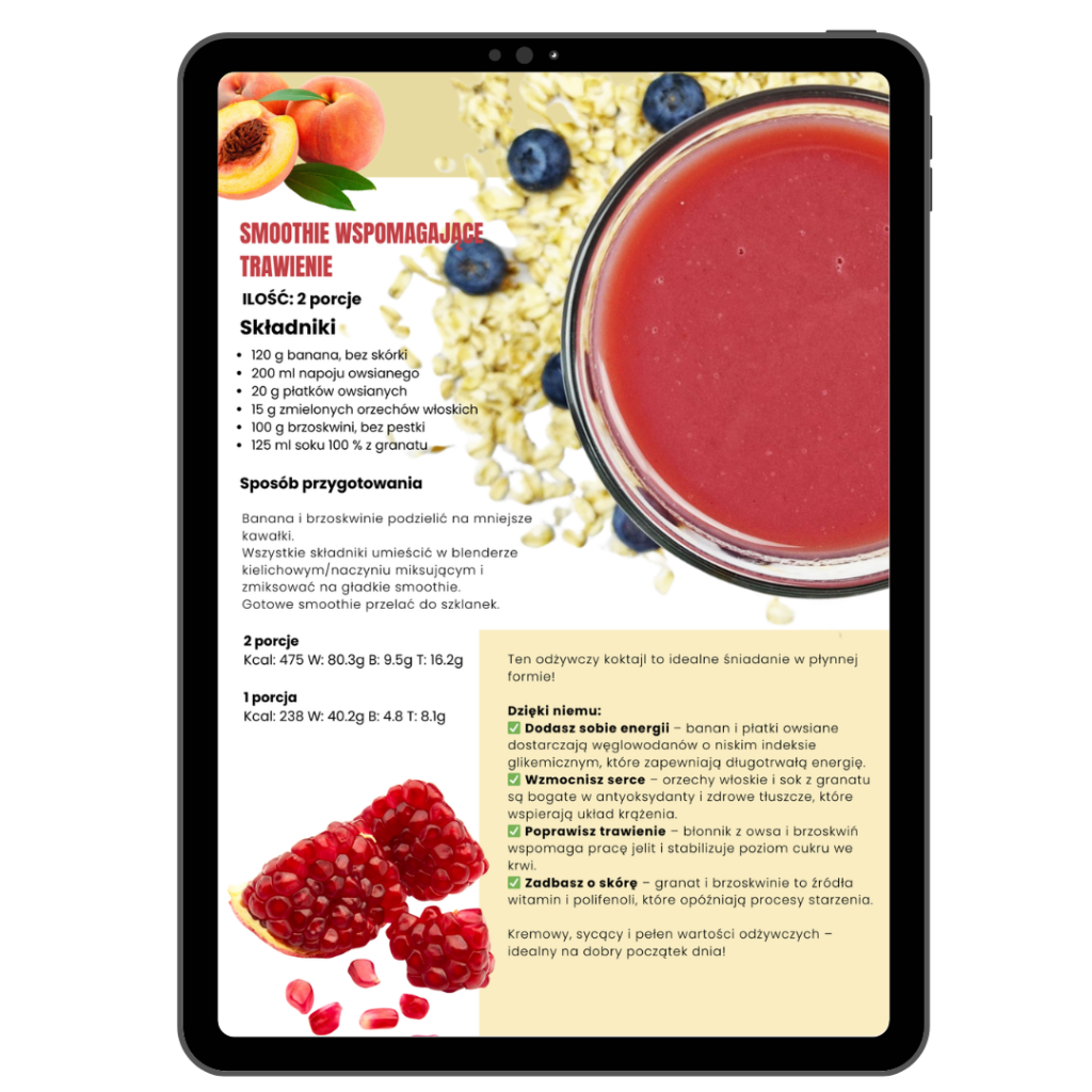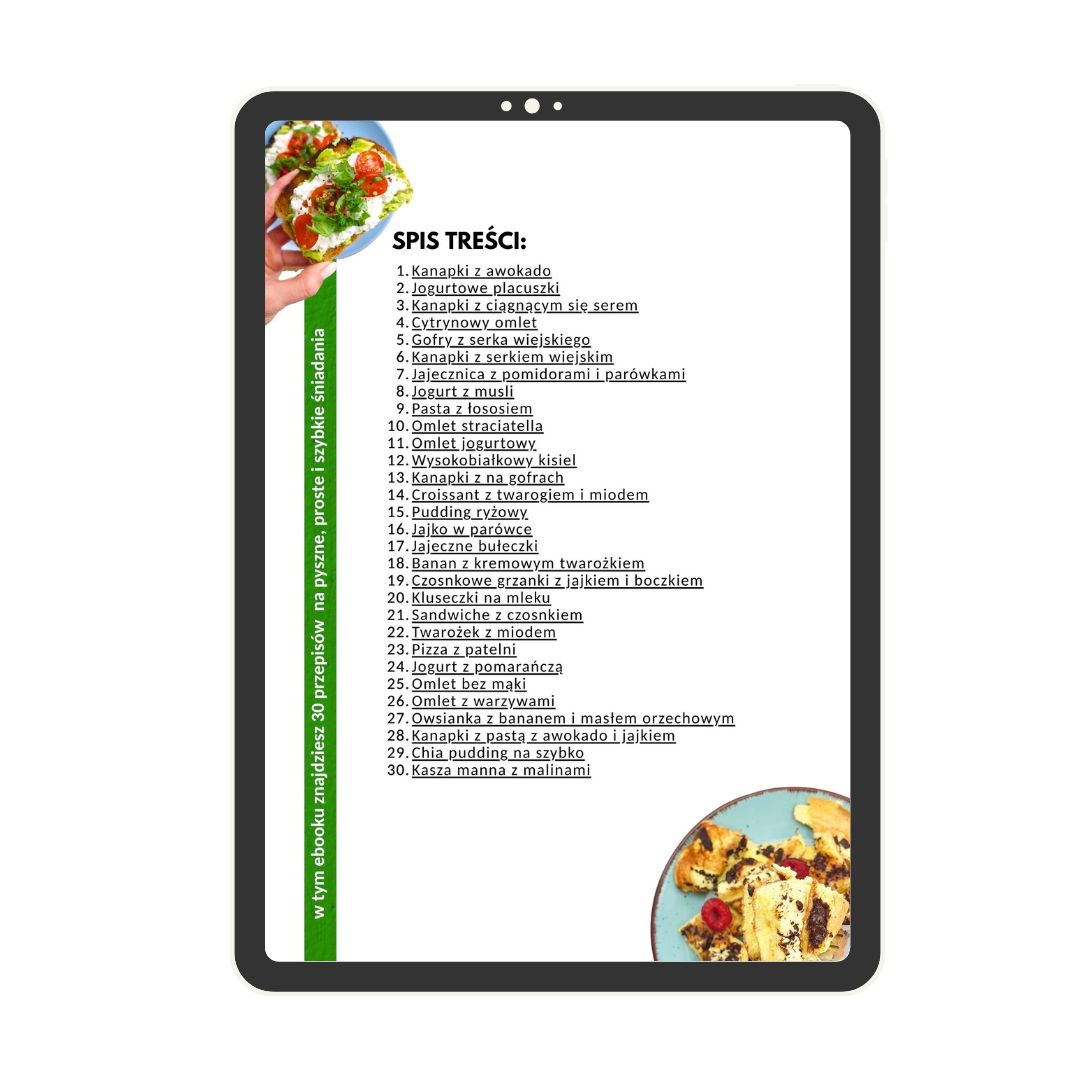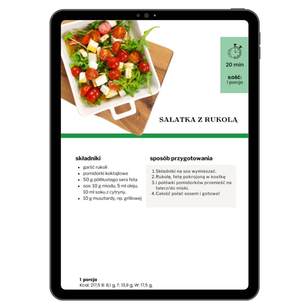 Poradnik otrzymasz w wygodnym pliku PDF – możesz go otworzyć na telefonie, komputerze czy tablecie. Dzięki temu zawsze masz go pod ręką, także w kuchni.