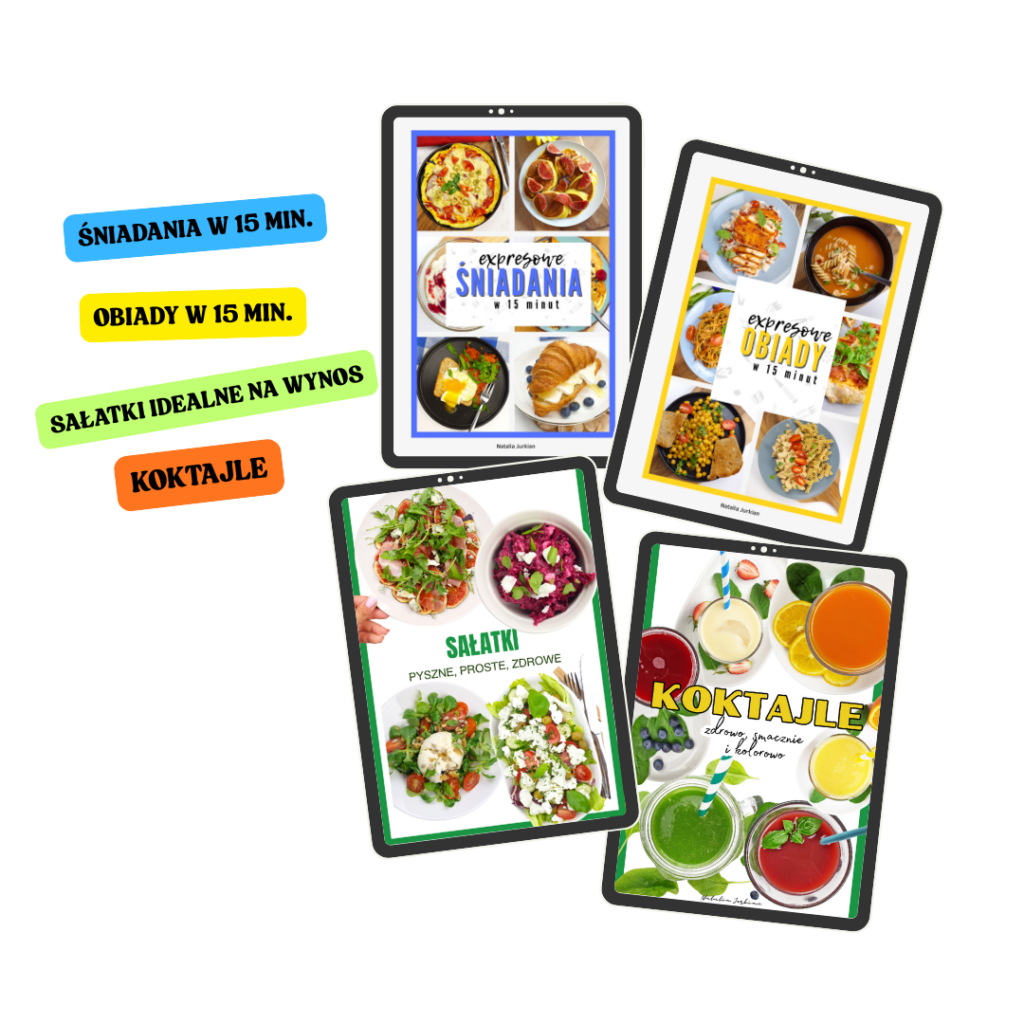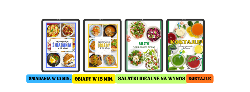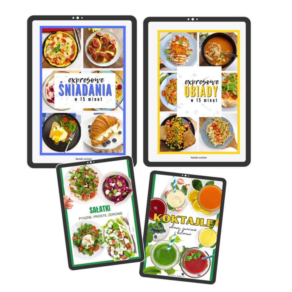 4 e-booki pełne przepisów — każdy z łatwymi daniami na czas, np. śniadania, obiady, przekąski
